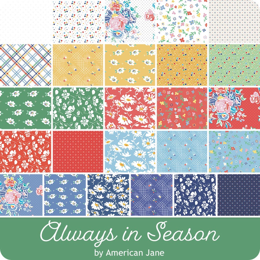 Create something you can enjoy all year around using this collection by American Jane. Always in Season is a lovely and unique set of fabrics that features vintage designs of geometric shapes and blooming florals decorated with bold and bright hues.
