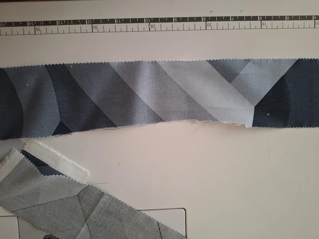 I was very please with the fabric until I began putting the strips together. There are strips that have been chopped into by 3/4" for a length of 7".